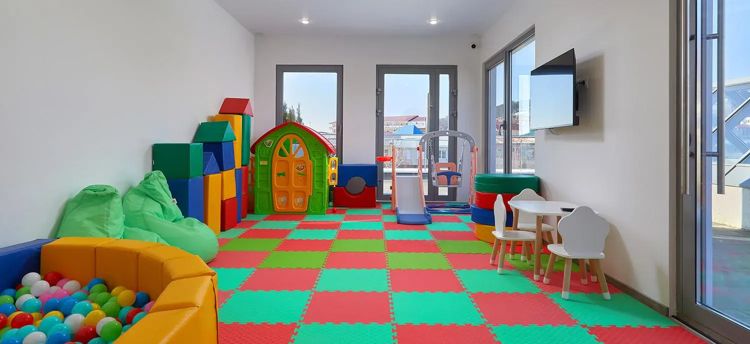 В игровой комнате ждут маленьких гостей от 3 до 8 лет. Посещение детской комнаты детьми только под присмотром родителей или сопровождающих лиц обязательно.