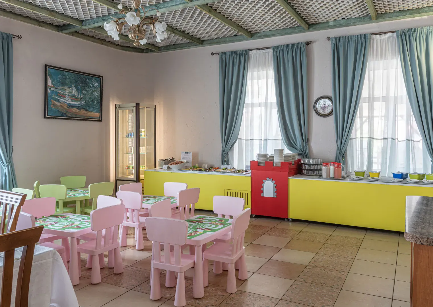 Ежедневно для вас - разнообразное меню, включающее закуски и салаты, мясные и рыбные блюда, супы, овощи, каши, алкогольные напитки. Кроме того, для детей предусмотрено баночное питание (по запросу), стерилизатор и подогреватель для бутылочек, блендер, микроволновая печь и детские стульчики.