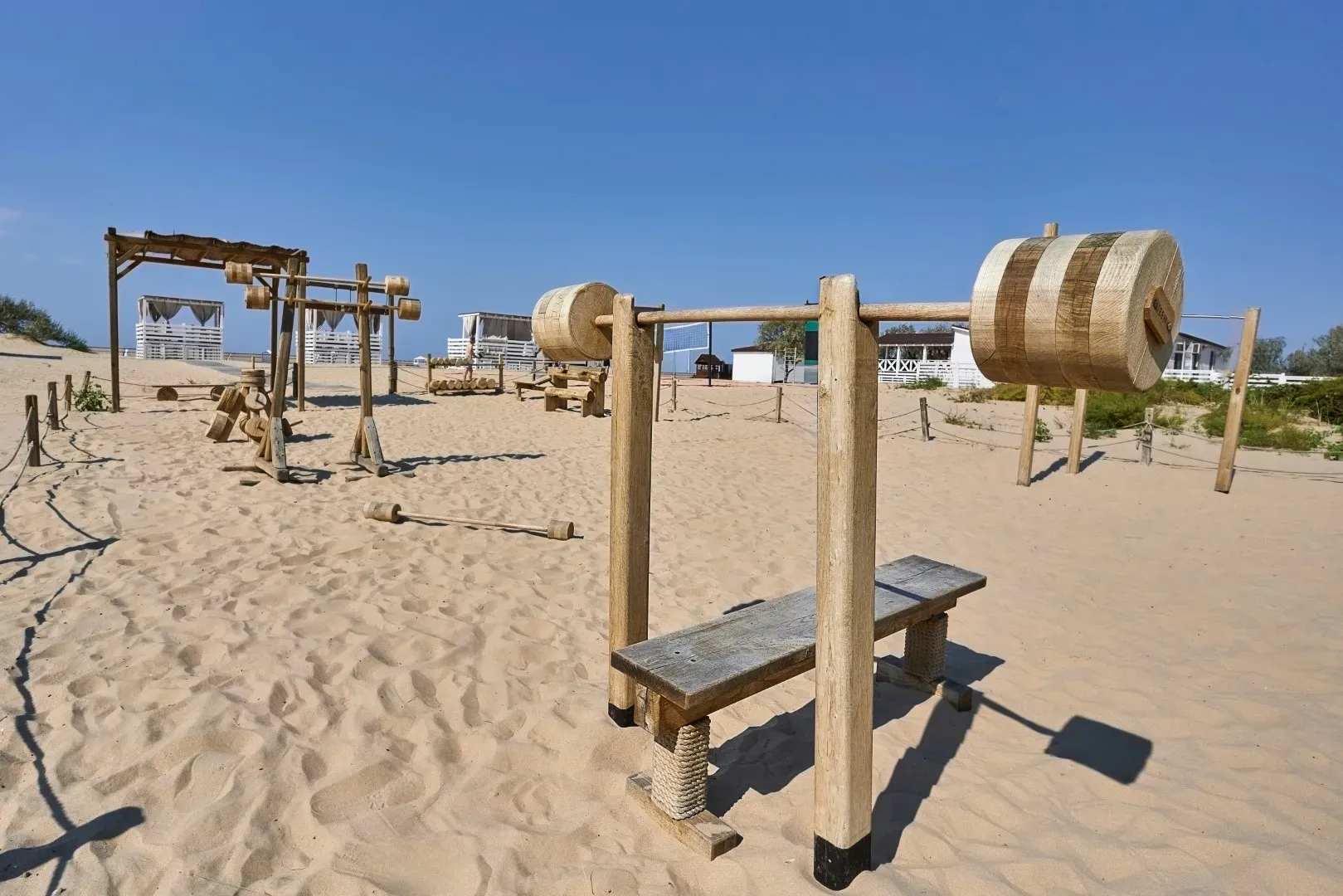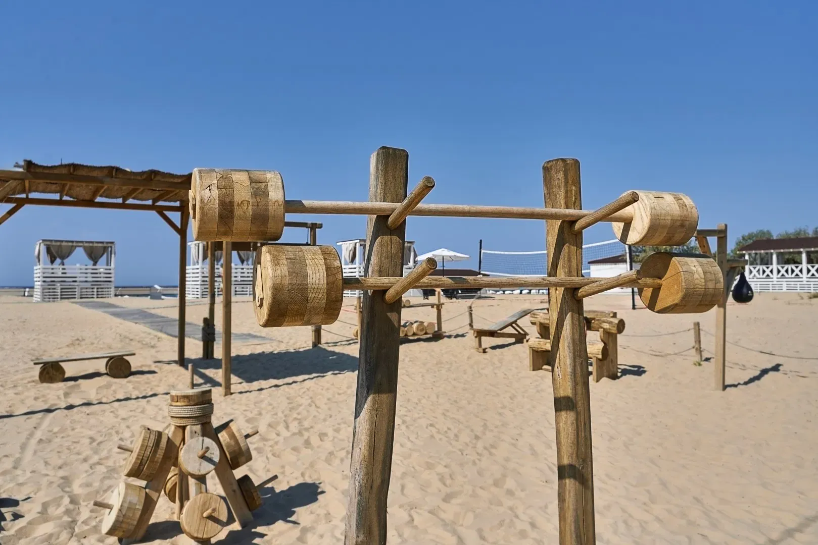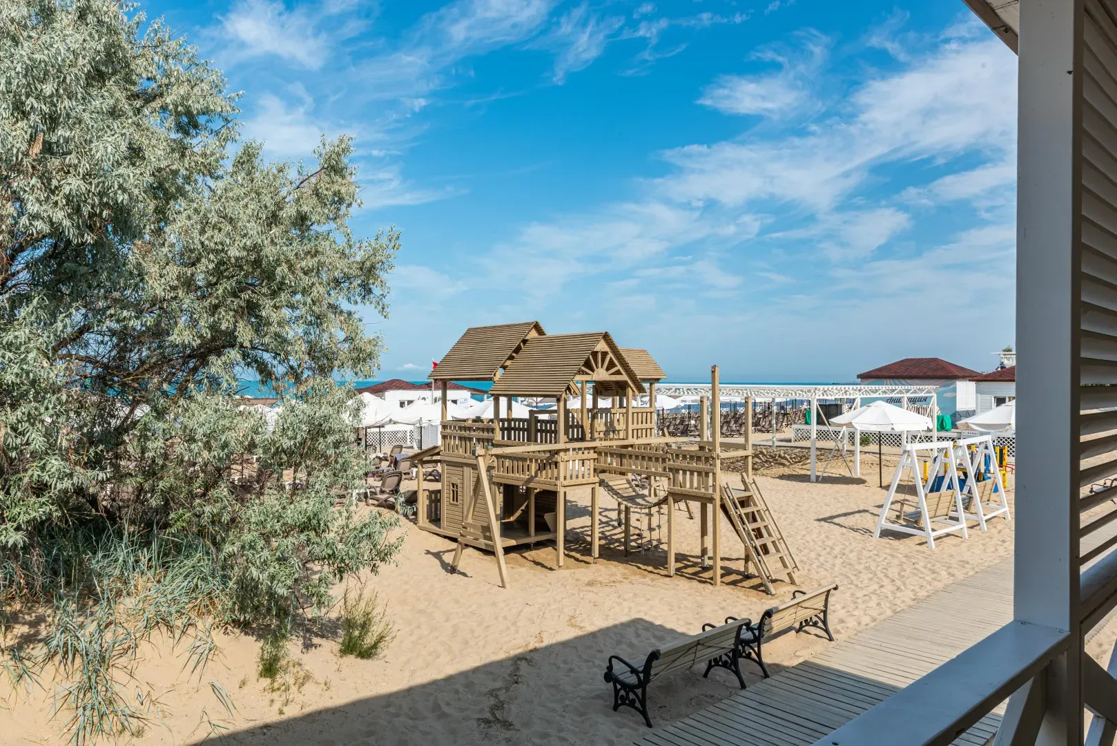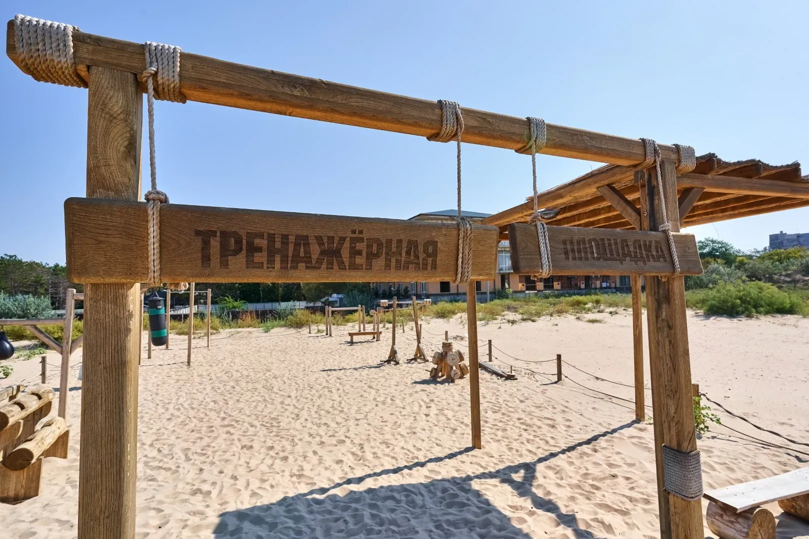 На пляже отеля в Анапе открыты игровая и фитнес-площадки, детский клуб, а также проходят анимационные развлекательные мероприятия, действует пункт проката байдарок и сап-бордов.