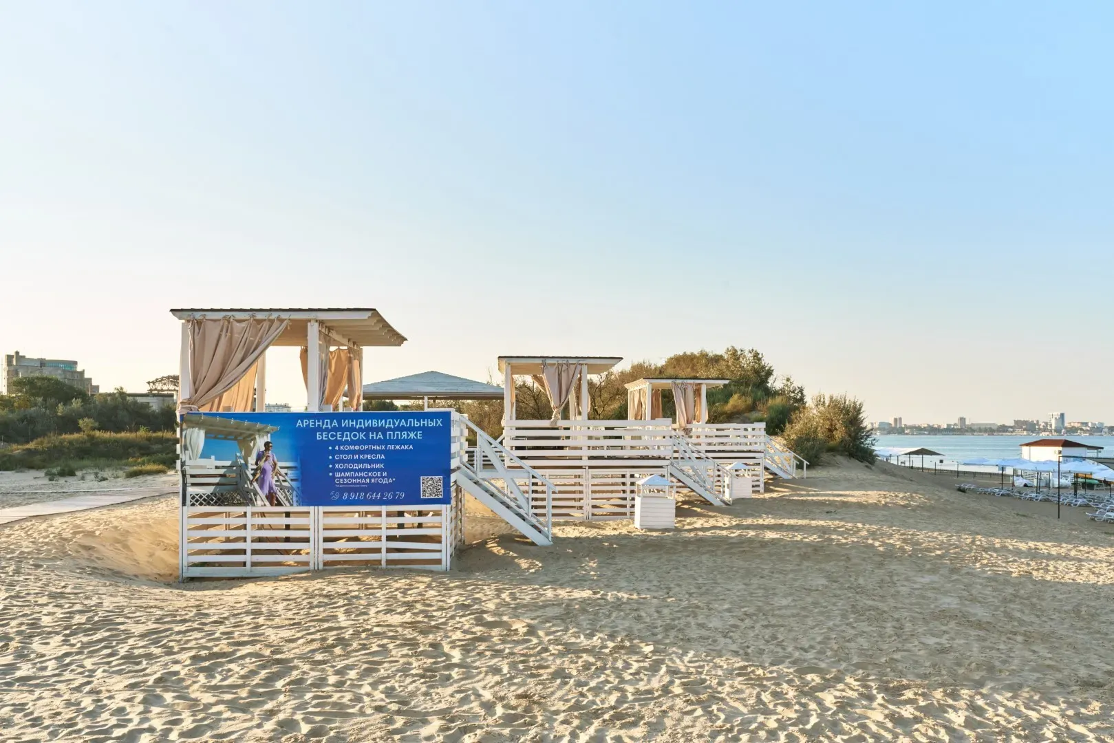 Для удобства гостей на пляже имеются пункт выдачи чистых полотенец, сейфовые ячейки, оборудованное место для курения, работает Wi-Fi и осуществляется трансфер от отеля до пляжа и обратно. Для тех, кто предпочитает уединение, имеются индивидуальные беседки.