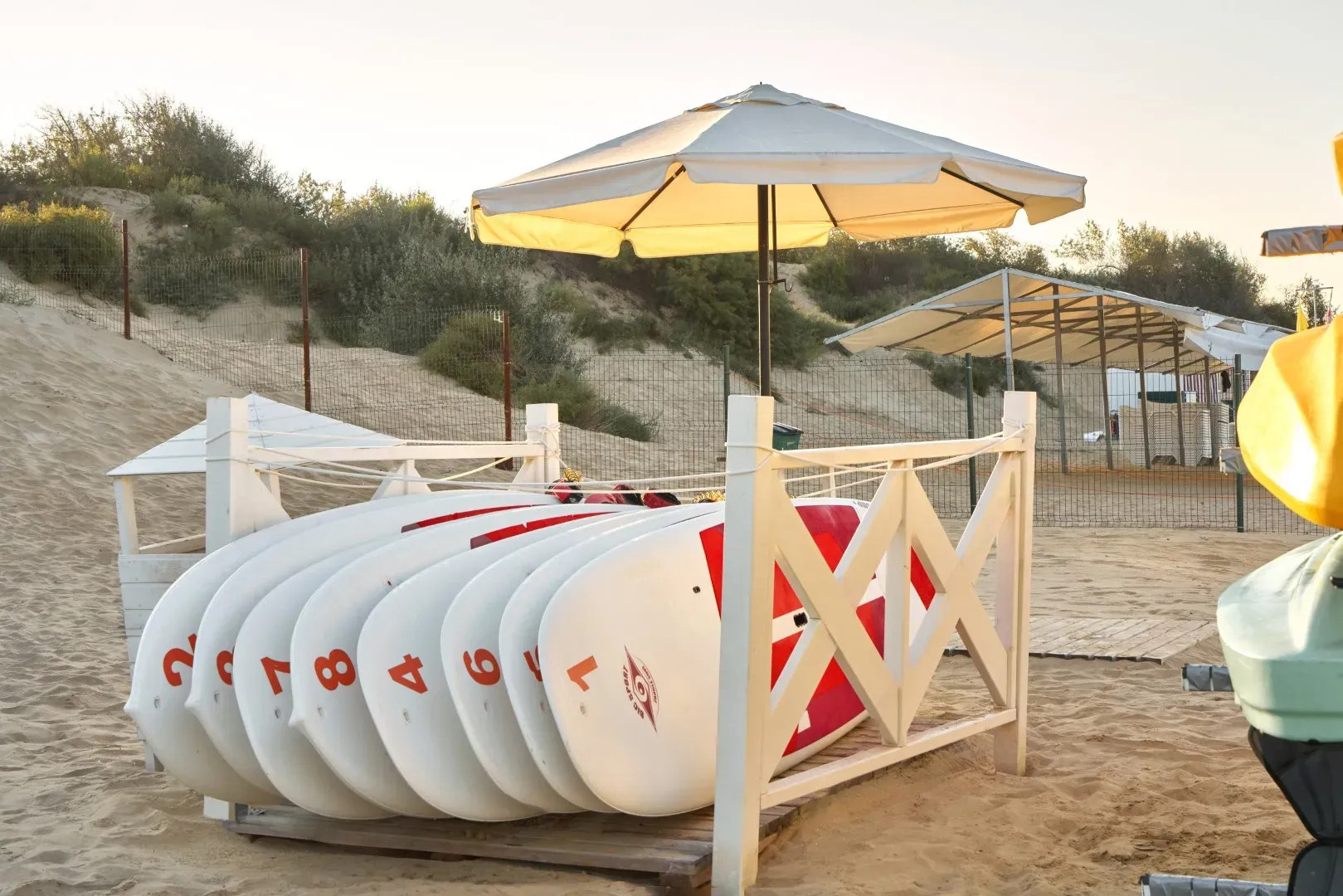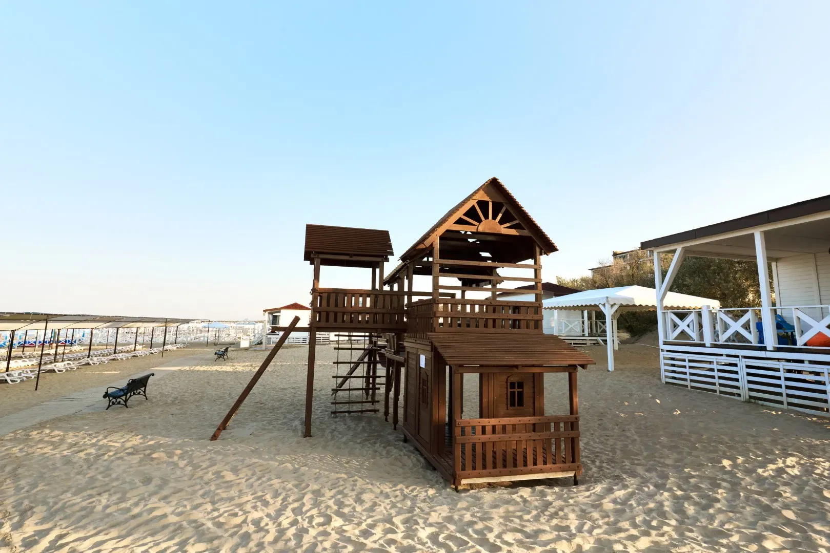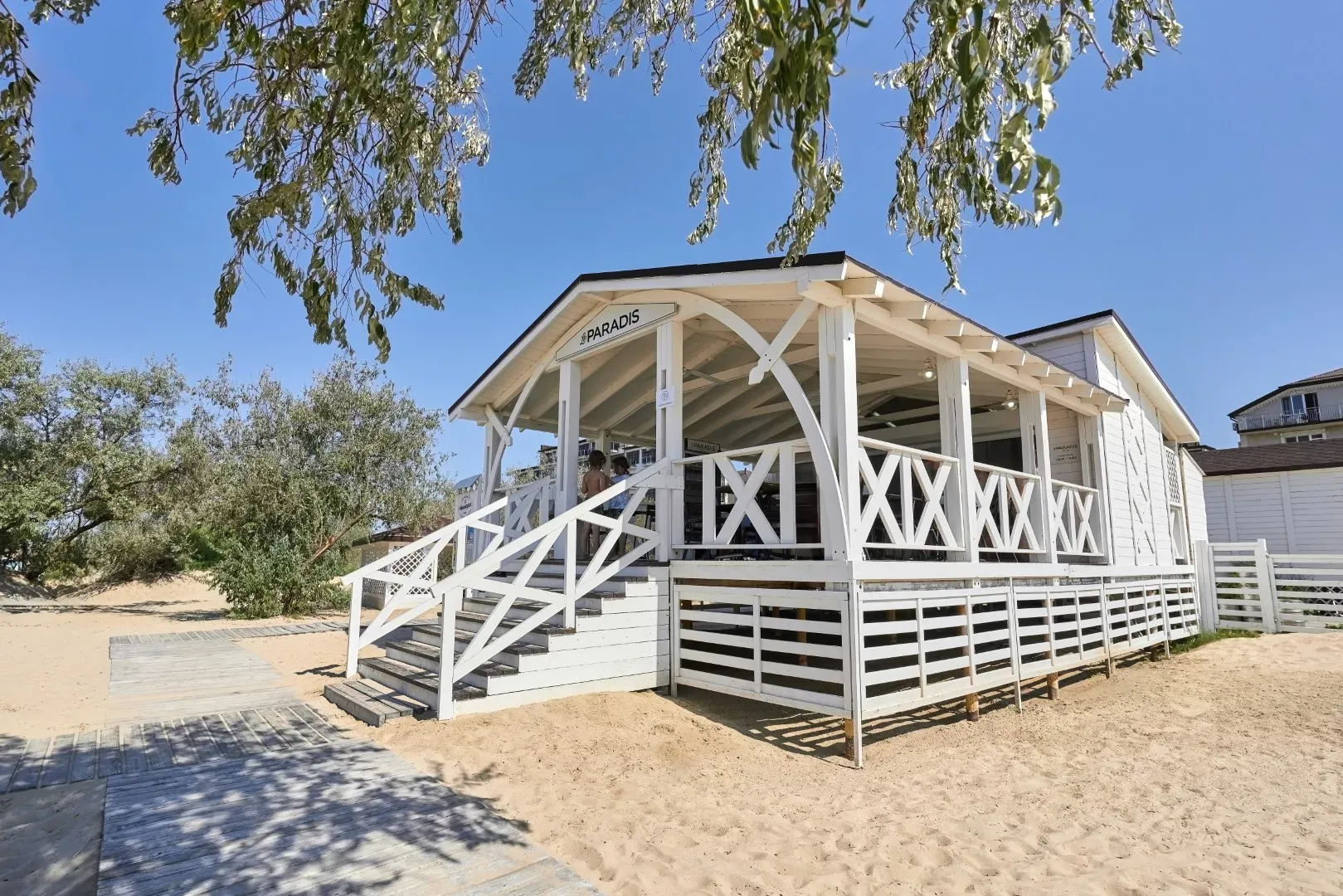 Из развлечений на пляже гостям доступны: детская игровая площадка, площадка для волейбола, сцена для анимационных мероприятий, прокат водного инвентаря, сап-досок.