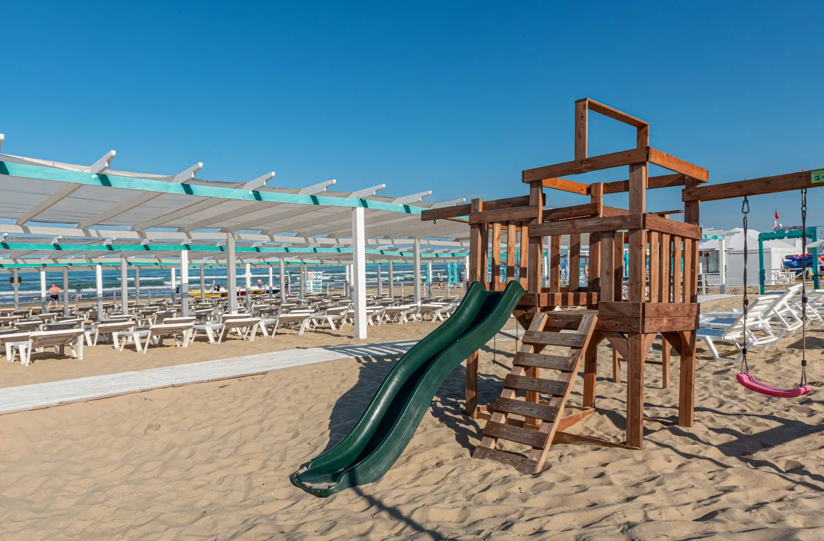 Зона пляжа отеля оборудована лежаками под зонтами и тентами, туалетами, душевыми, раздевалками, спасательным и медицинским постами.
