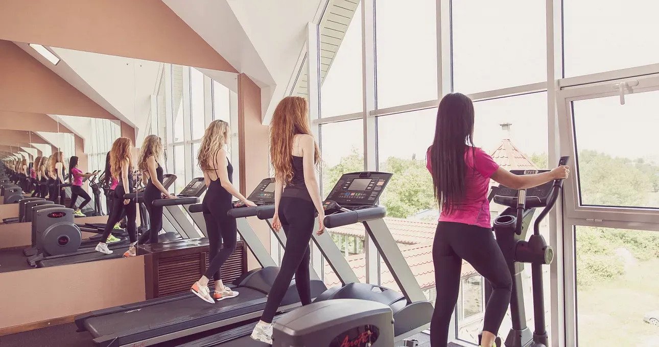 Кардиозона тренажерного зала оснащена профессиональными тренажерами: беговыми дорожками, вело- и эллиптическими тренажерами.