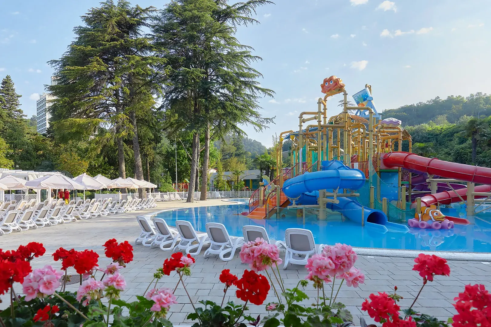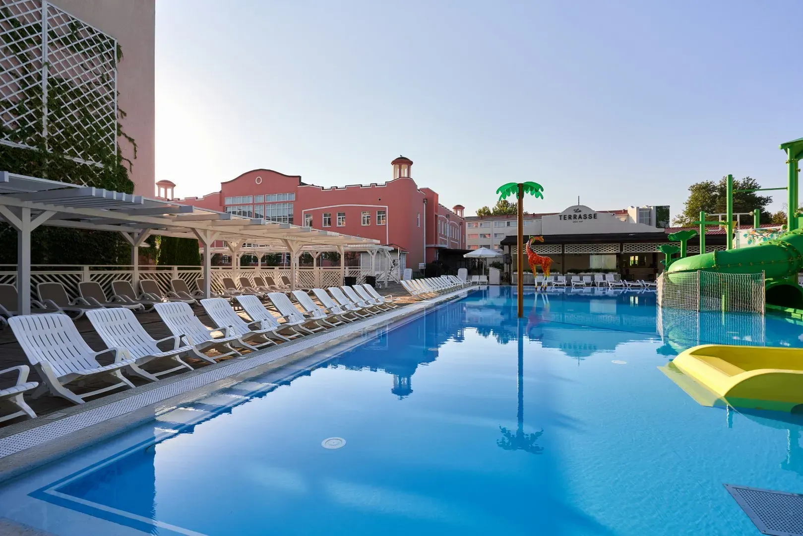 Бассейны – плавательные и с аквагорками – неизменно привлекают гостей отеля. Вблизи расположены снек-бары с едой и напитками, а также пункт выдачи полотенец.