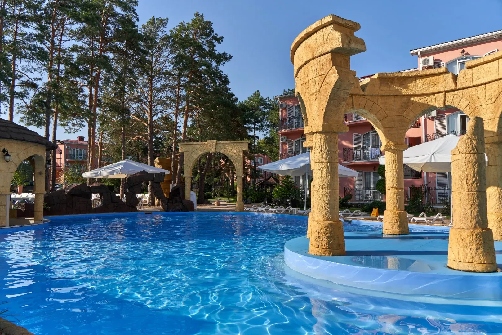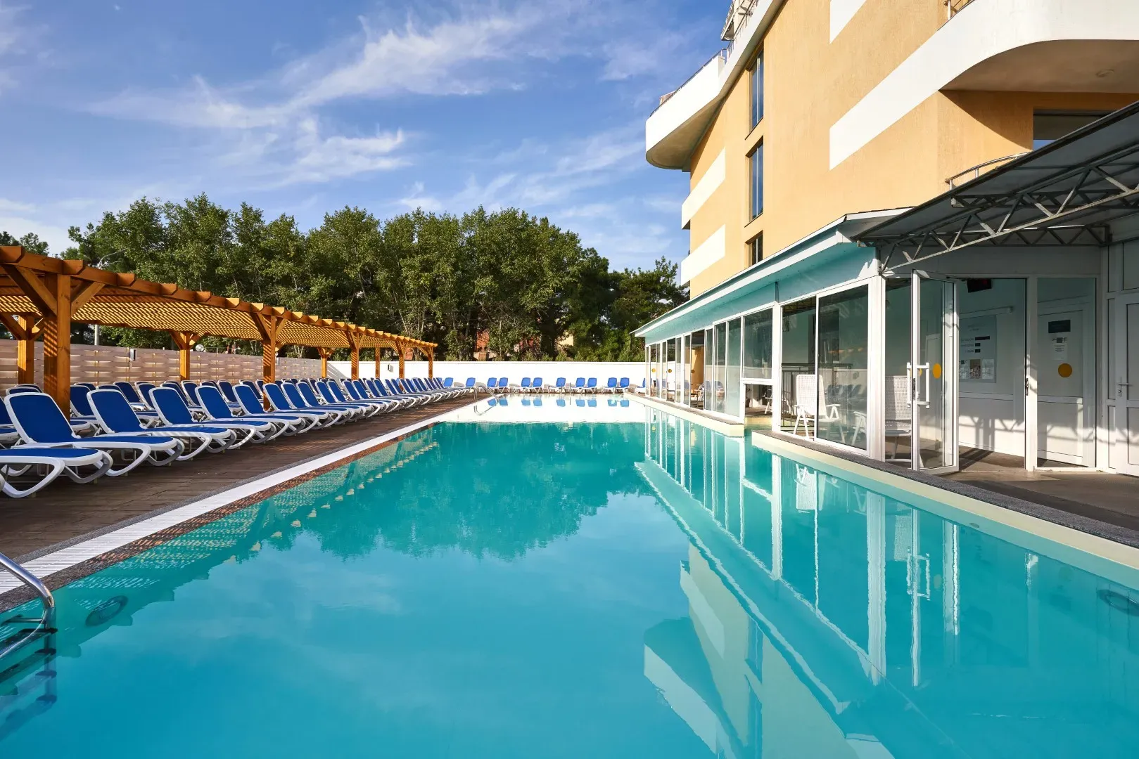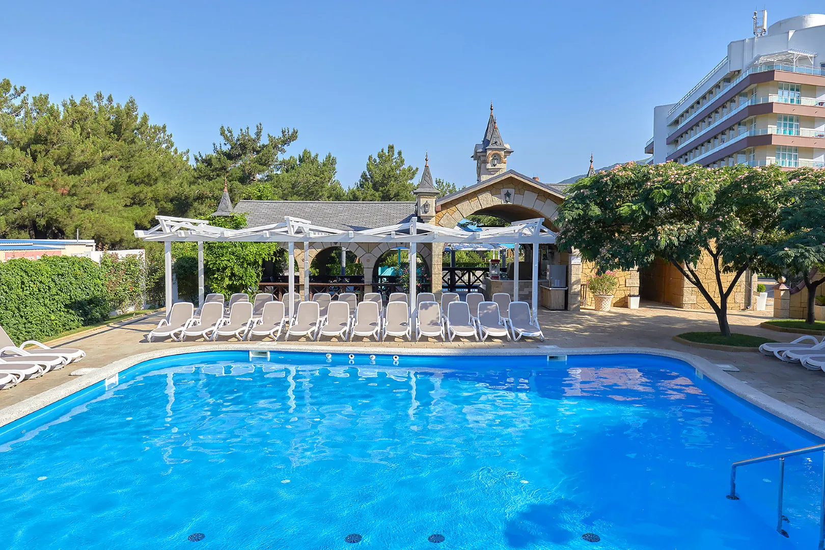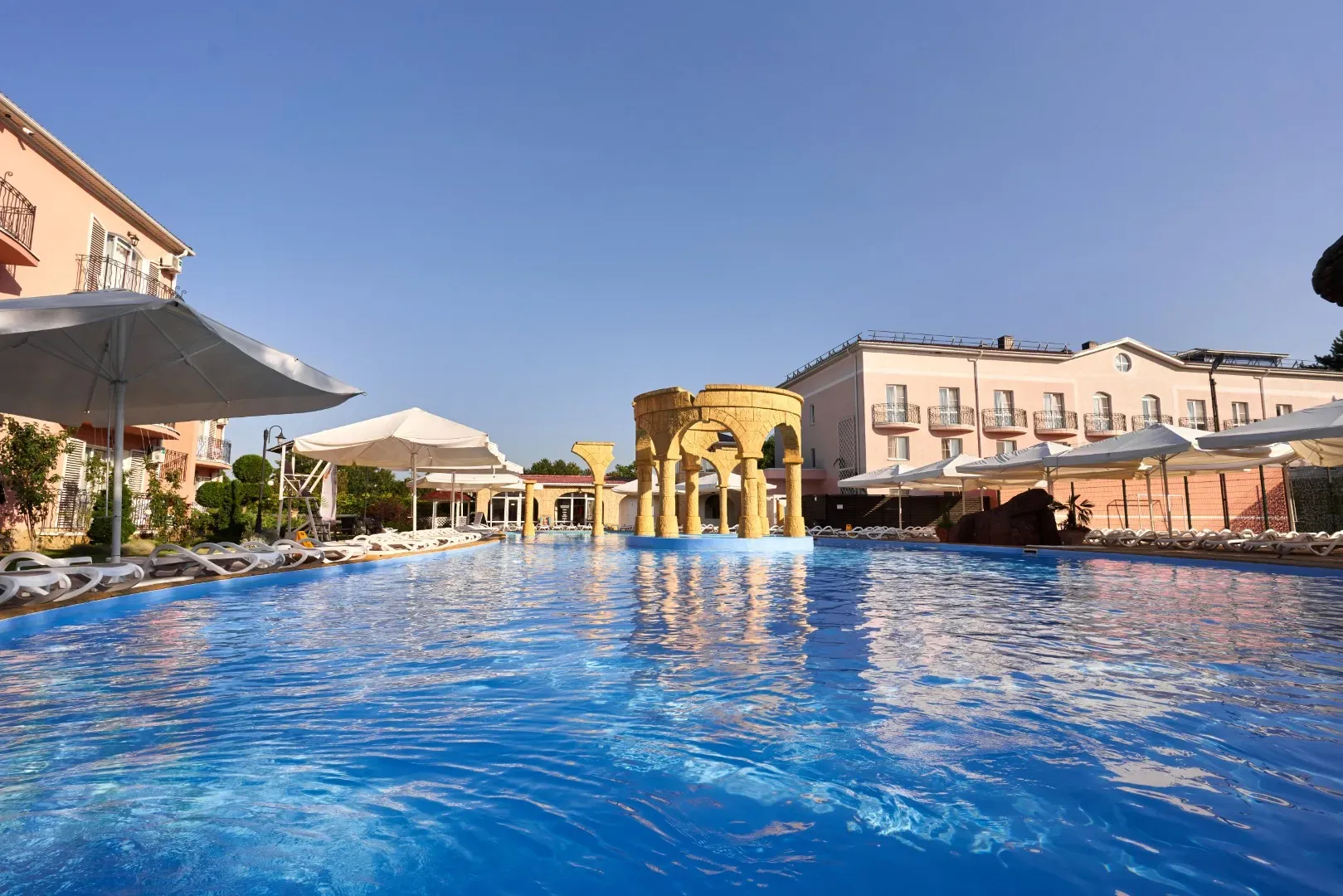 К услугам наших гостей представлены не только рестораны и снек-бары, но и 5 бассейнов, в том числе подогреваемые, с детскими зонами, гидромассажем и водными горками, фитнес-клуб, спортивные и игровые площадки, анимационная беседка с настольными играми, теннисом, бильярдом и аэрохоккеем, а также собственный оборудованный песчаный пляж с точками питания и прокатом инвентаря расположен в 350 метрах от отеля.