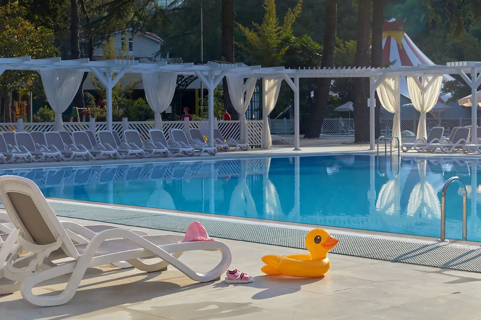 Для вашего комфорта бассейн разделен на взрослую и детскую чаши.