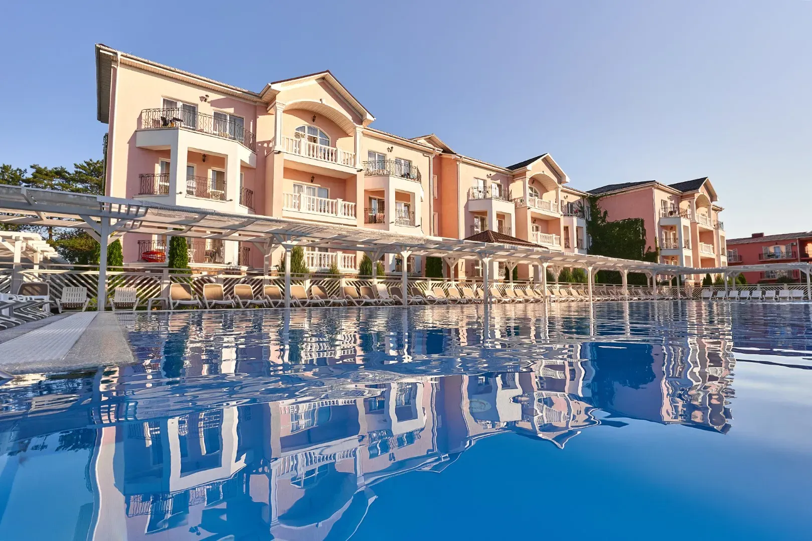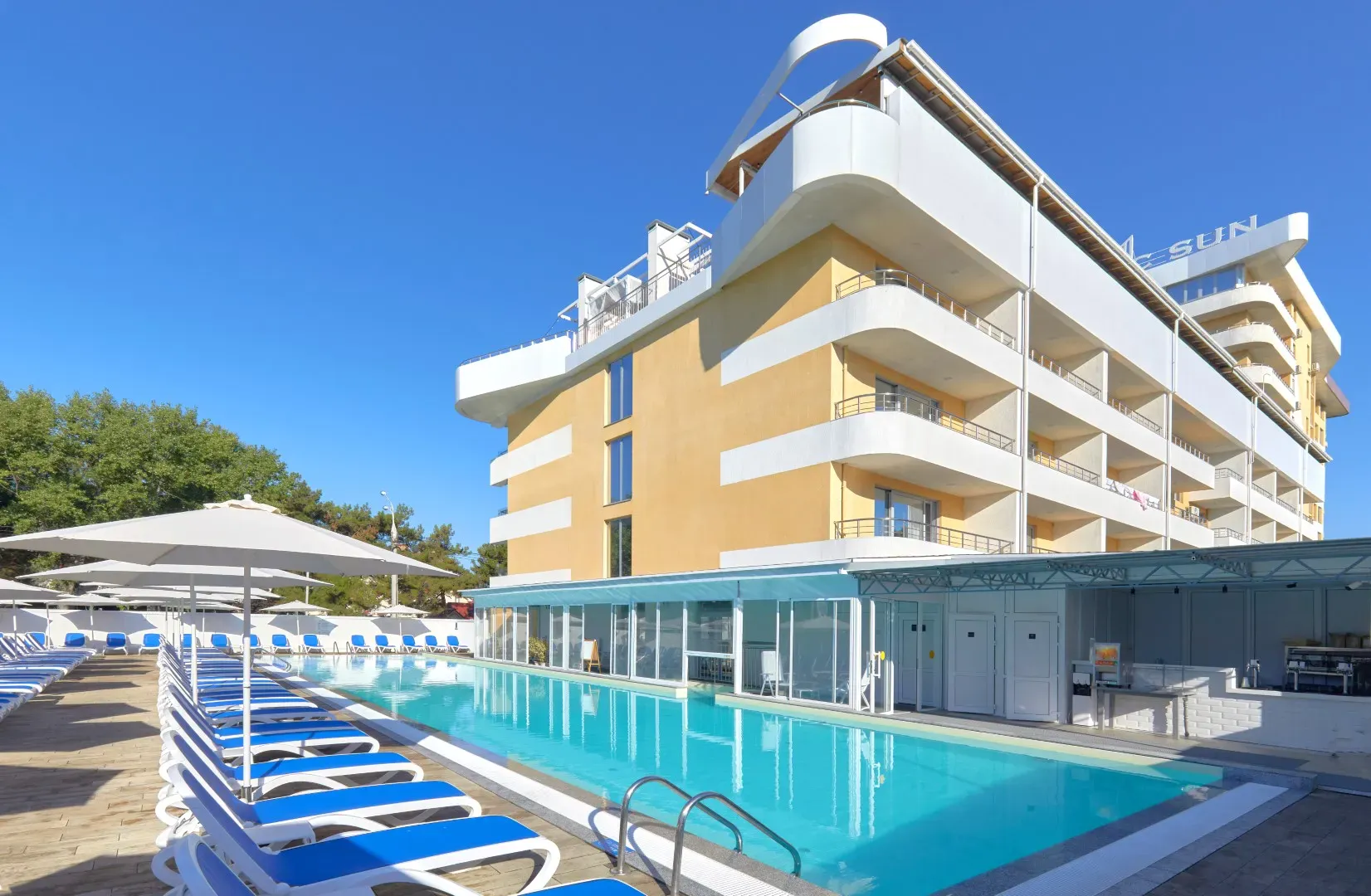 На территории отеля расположено несколько бассейнов, которые удовлетворят любые предпочтения гостей. Среди них — открытые подогреваемые бассейны с комфортной температурой воды 26–29°С. Здесь вы найдете бассейн с ротондой и спортивно-анимационный бассейн для активного отдыха. Для детей в благоприятную погоду работает новый акваплей — открытый подогреваемый бассейн с водными аттракционами, рассчитанными на детей от 6 лет.